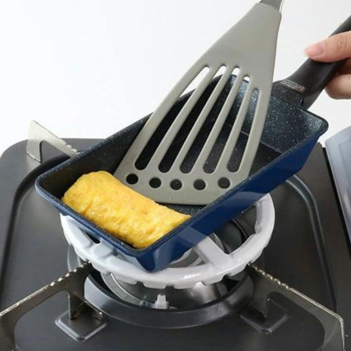 表面が乾いてきたら、菜ばしで裏返し、裏面も焼き(約10秒)、まな板に取り出す。同様にもう一枚焼く。