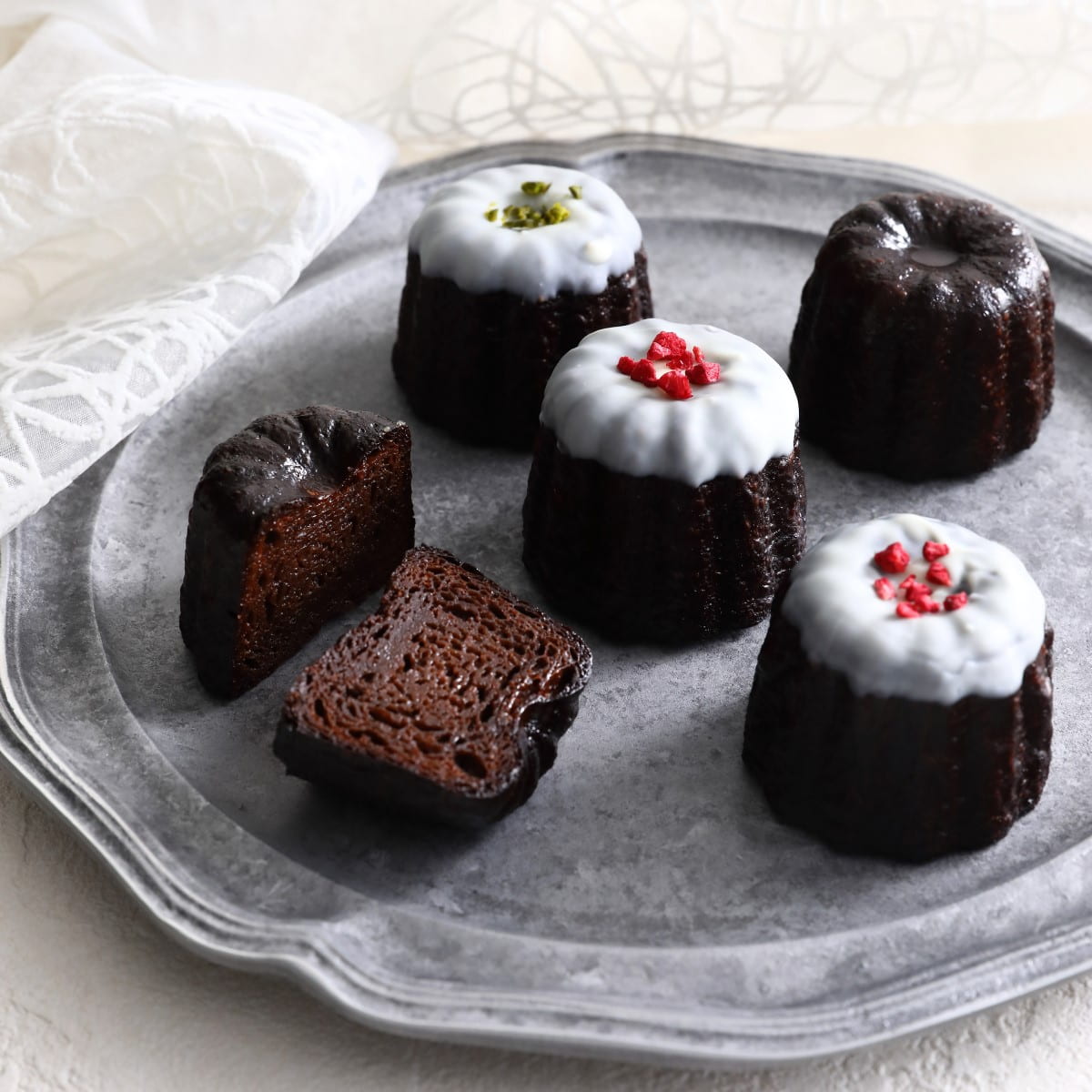 外はカリッと、中はしっとり。ココアパウダーとチョコレートを加えた贅沢なショコラカヌレ。