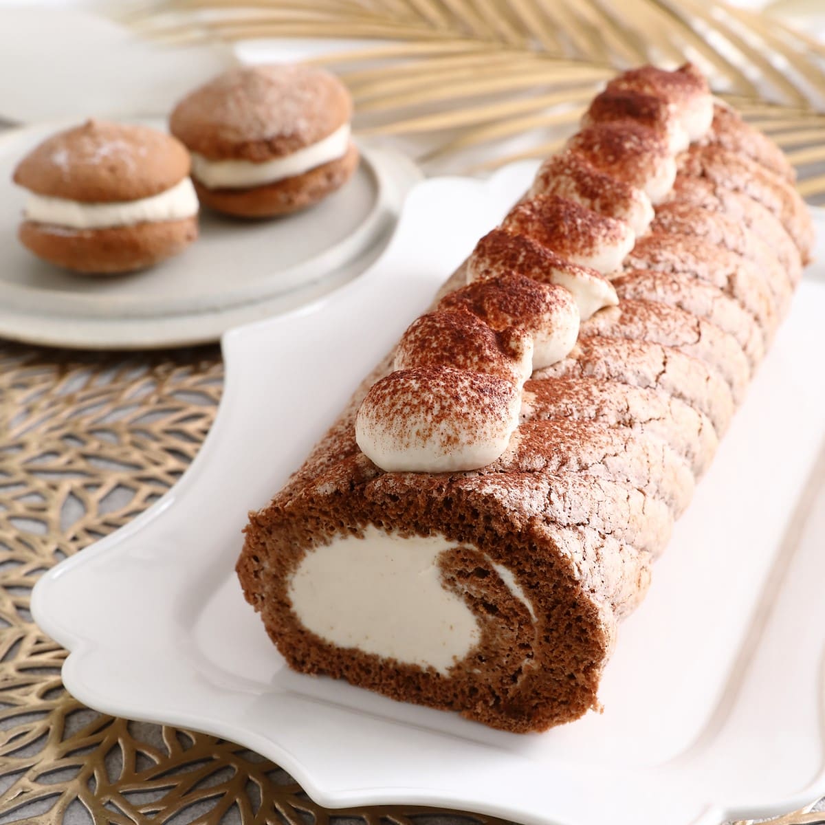 ビスキュイ生地使用。マスカルポーネクリームをたっぷり塗って巻き上げた贅沢ロールケーキ。