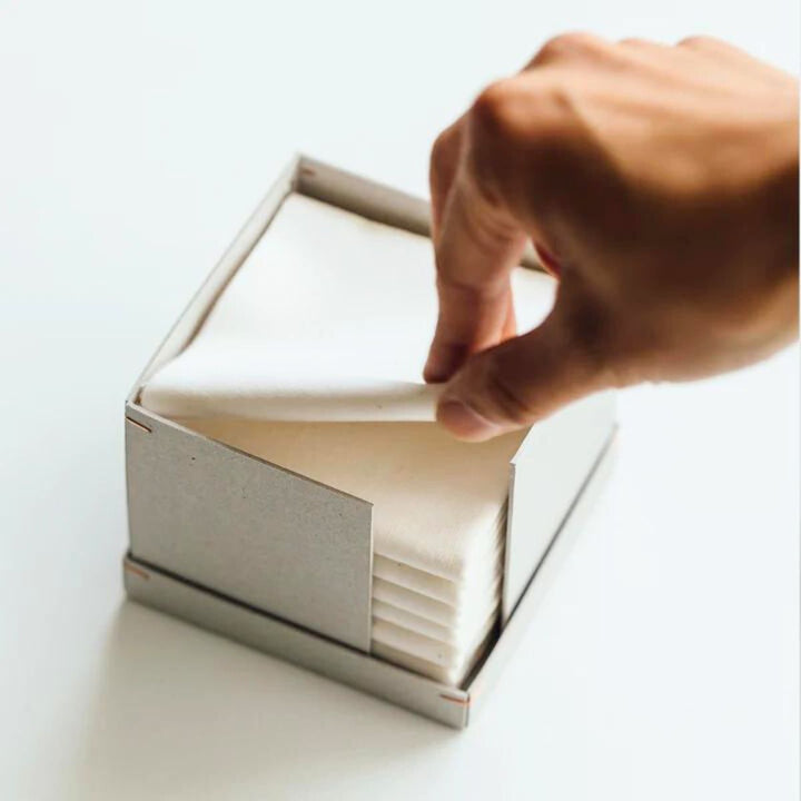 ●プレーンヨーグルトに塩を入れて混ぜ、重ねたペーパーで包む。