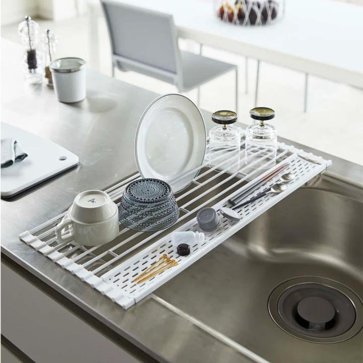 また来客の時にだけでもコンパクトにした水切りかごを無くしてあげるだけで、水切りかごのない暮らし風にすることができます。