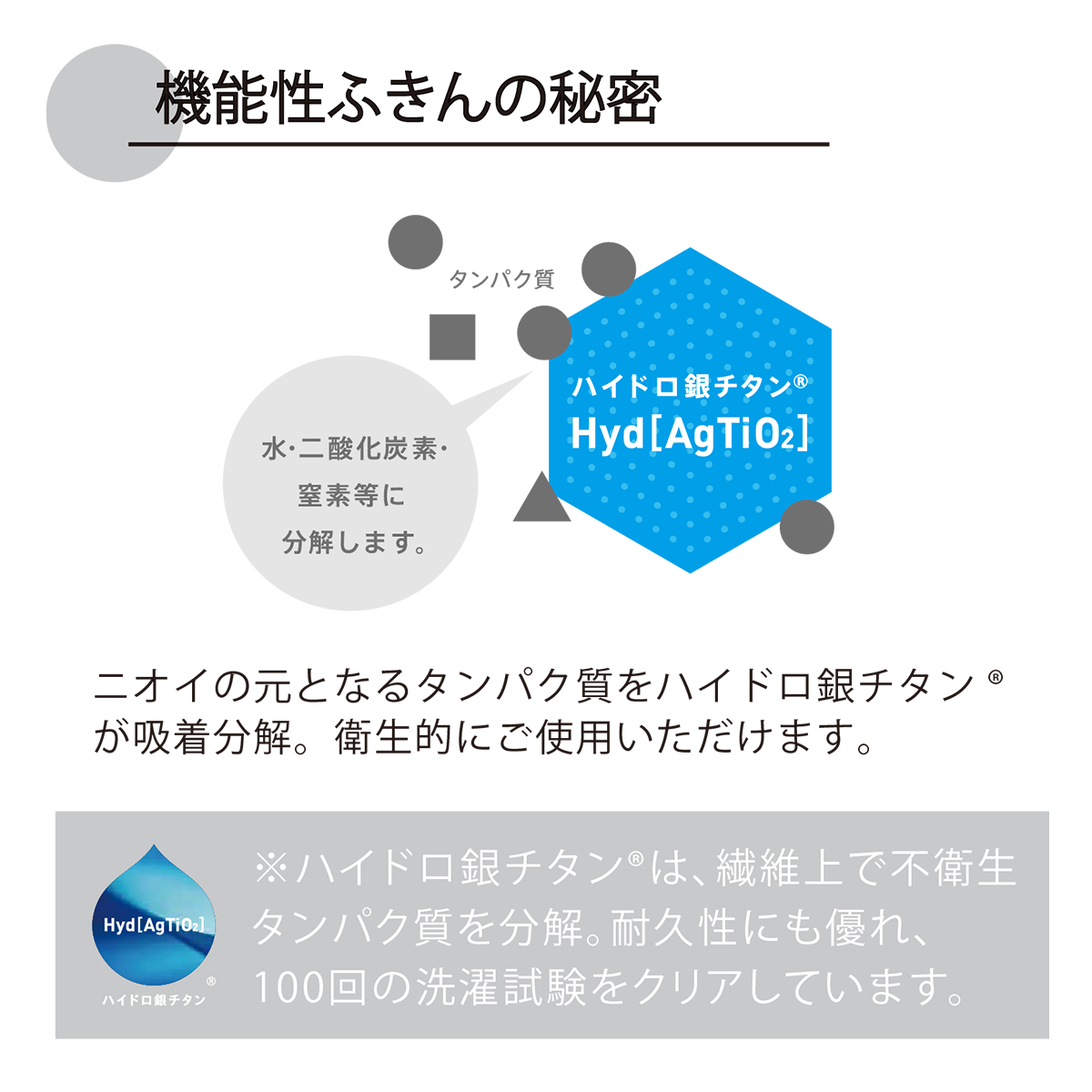 ①ニオイの元となるタンパク質を分解!ハイドロ銀チタン®︎加工を採用。ニオイの防臭効果が抜群!