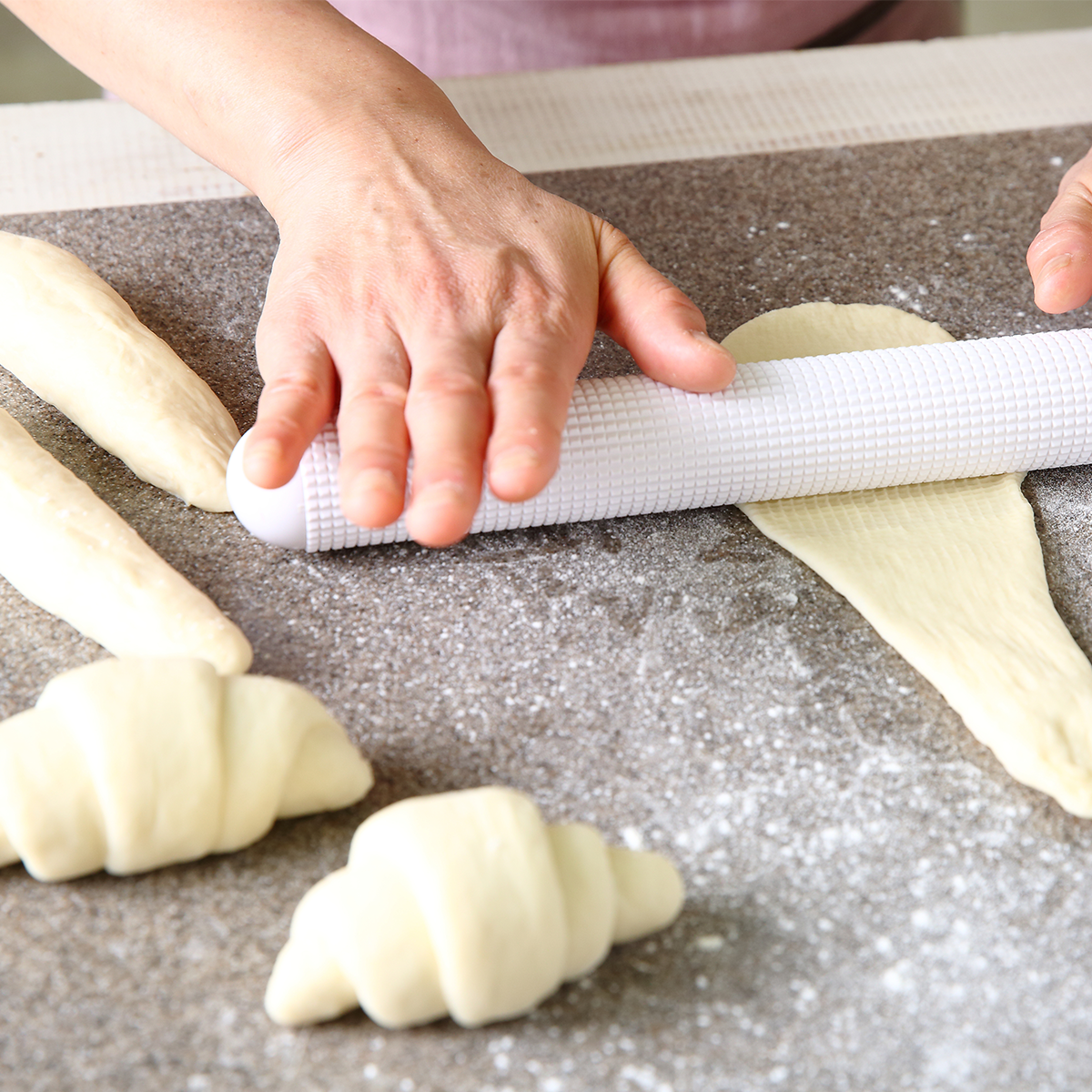パン生地の中のガス(空気)を抜きながら、なめらかに生地を伸ばすことのできる、パン作りに欠かせないガス抜きめん棒。