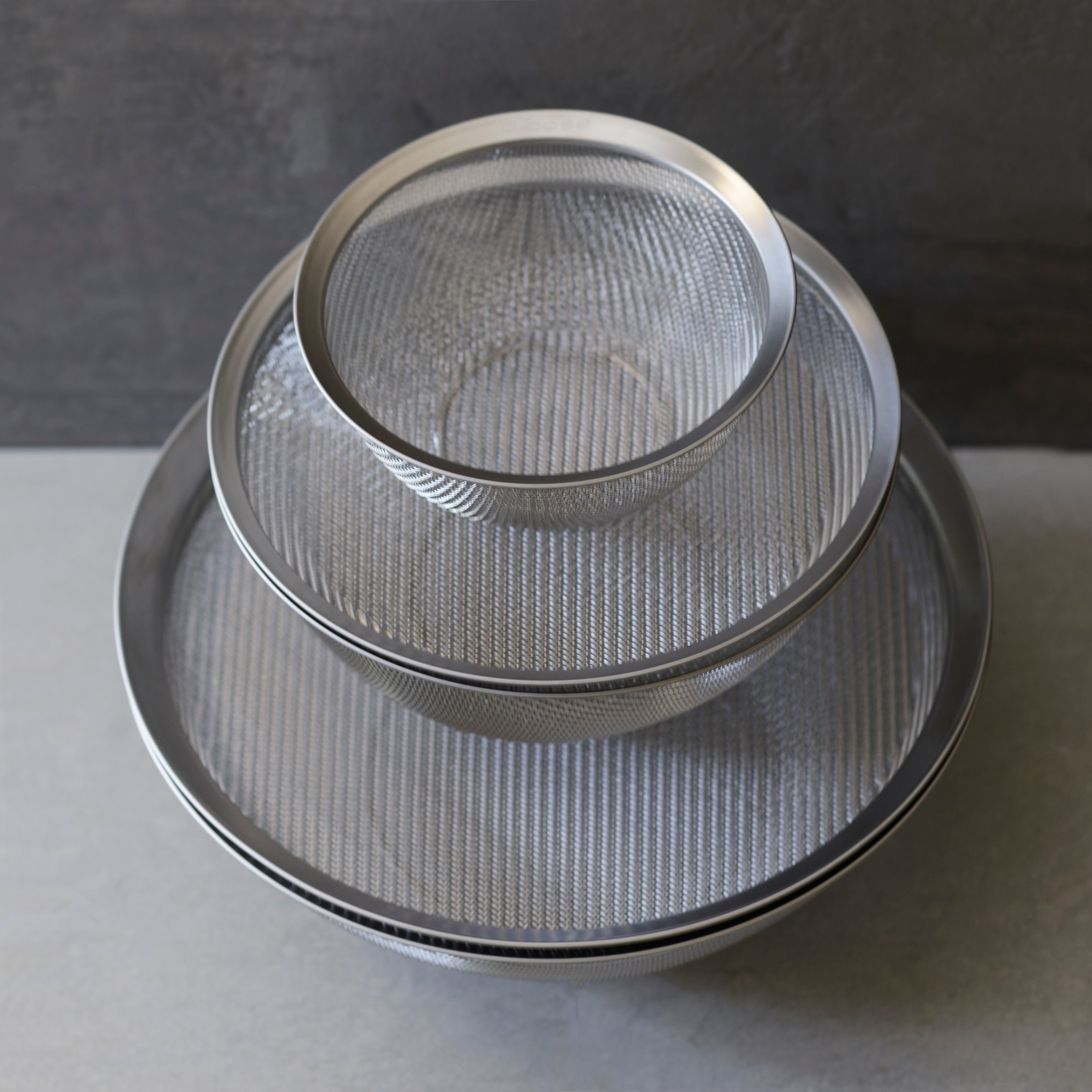 また、従来のざるより丈夫で、パンチング材のざると比べ格段に水切れが良いのも特徴です。耐久性に優れた18-8ステンレス鋼を使用し、綾織りという技法を用いて網を織ることで実現しました。