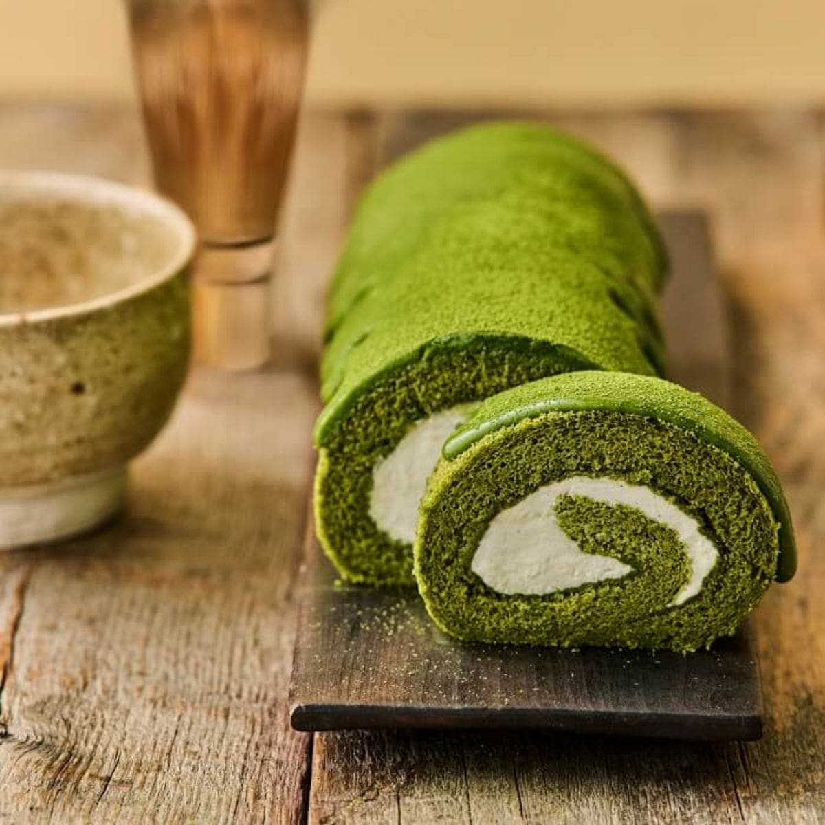 抹茶の香りが豊かなロールケーキ生地で、ホワイトチョコクリームをたっぷりと巻き上げます。チョコレートのグラサージュと抹茶をふって仕上げる、上品なロールケーキです。