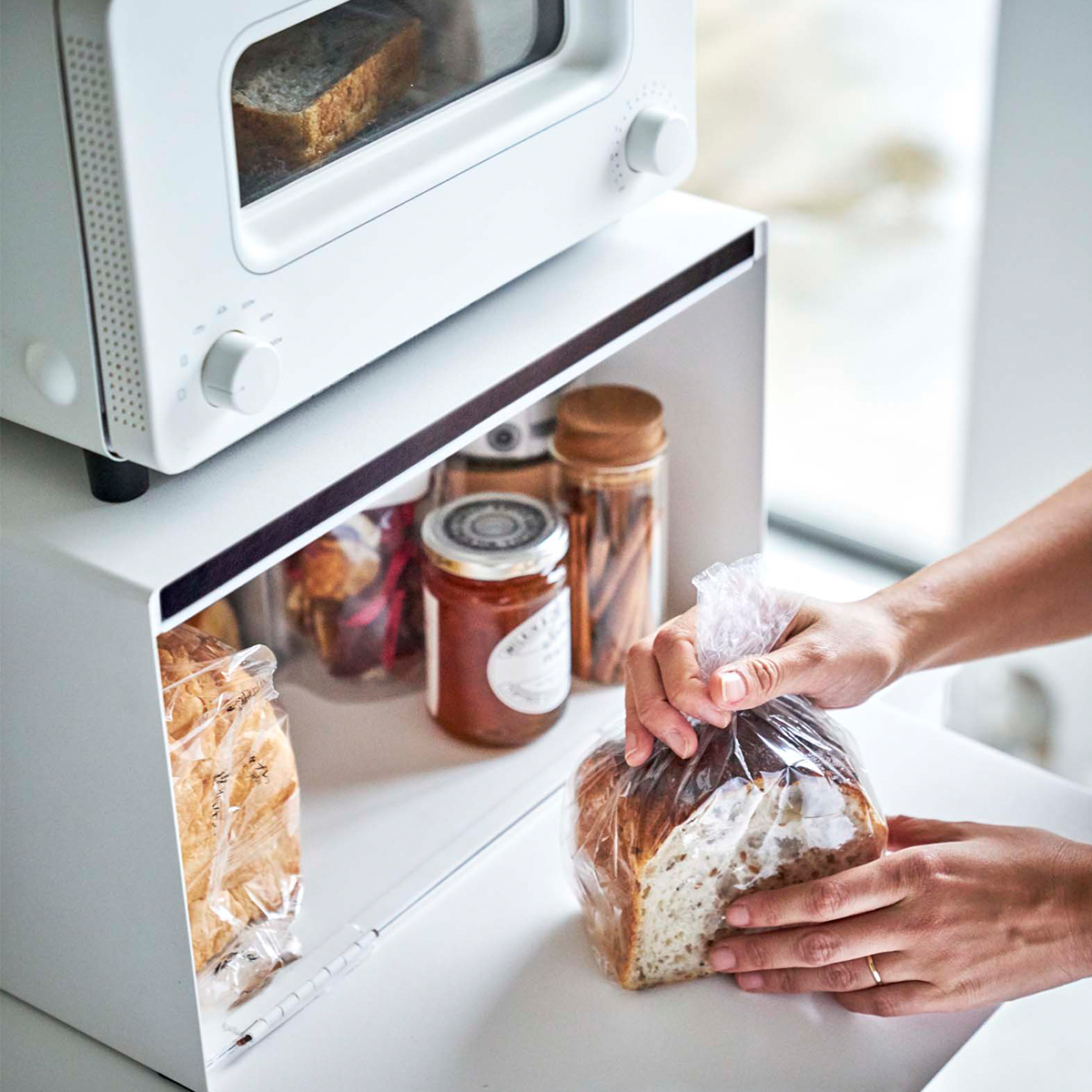 27Lの大容量ブレッドケース!キッチンカウンターなどで雑然としがちなパンやお菓子、調味料などを隠しながら美しく収納できます。