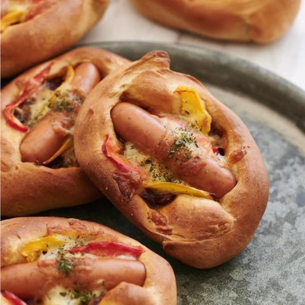カレーソース・ソーセージ・パプリカをトッピングした、焼き立てがたまらないお惣菜パンです。