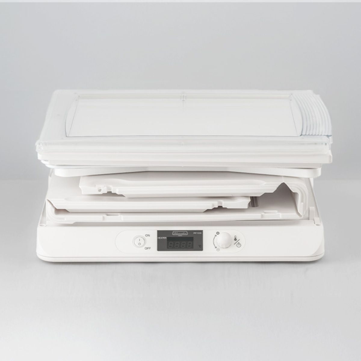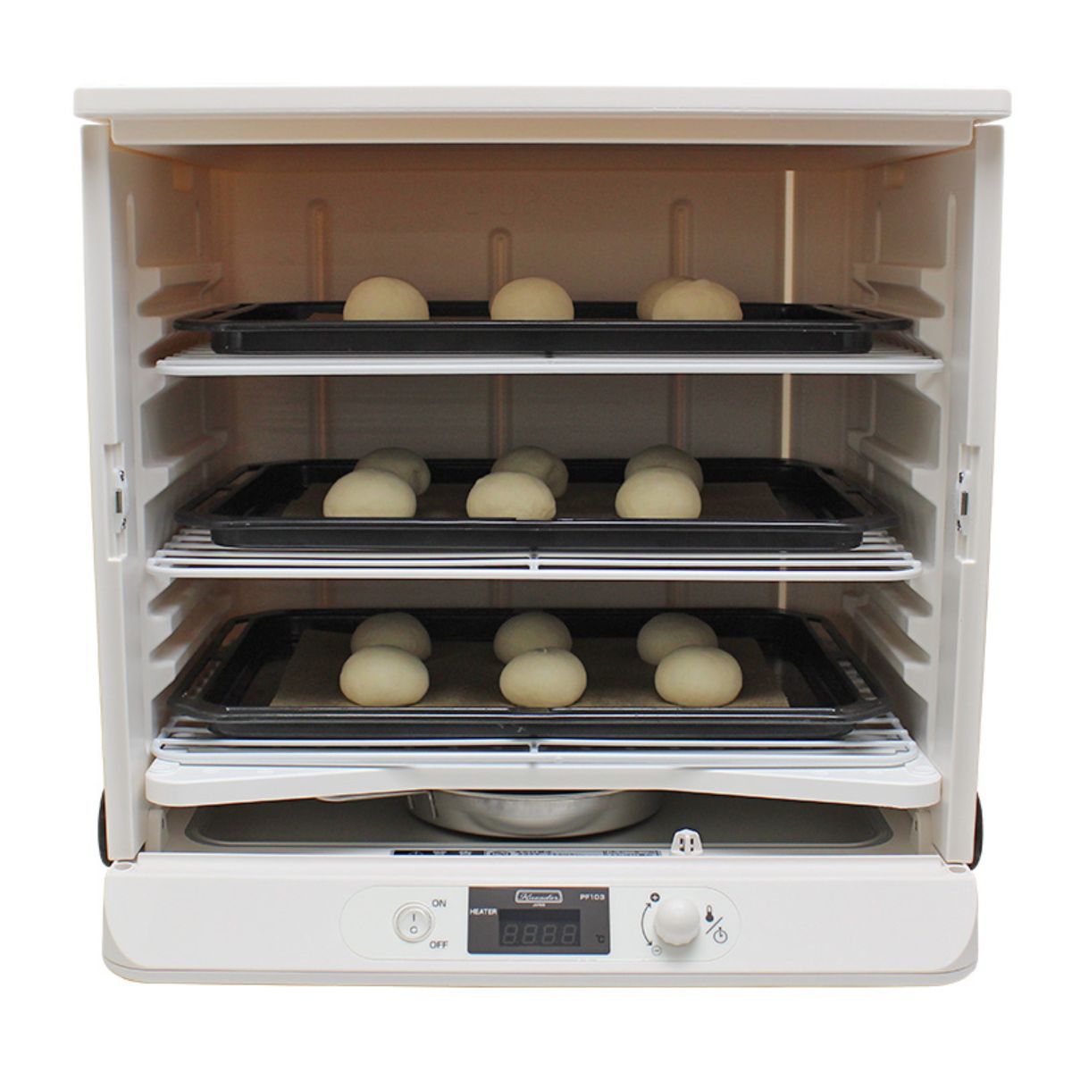 家庭用の天板(オーブン皿・角皿)が丸ごと入る、しっかりサイズの洗えてたためる発酵器。前機種PF102 と比較してダイヤル操作で簡単設定、結露水循環式でお手入れが楽になりました。