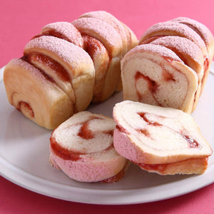 簡単なのに見映えのする成形も魅力!さわやかで甘酸っぱいいちごの酸味がミルク風味の生地によく合います。仕上げに粉糖といちごパウダーを散らせば、まるで絵本の世界から出てきたような可愛いパンの完成。