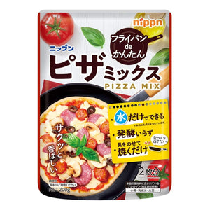 水と具材だけでサクッと香ばしいピザが20分で出来上がるピザミックス。ひっくり返さないので、フライパンで具をのせて焼くだけ。オーブントースターでも焼けます。
