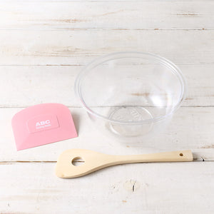 長らくご愛顧いただいておりました、ABC Cooking Studioブレッドレッスンで使用しておりました「穴あき木べら」は、メーカー製造終了のため販売を終了いたしました。 つきましては、本商品セットに含まれる穴あき木べらを「穴あきターナー」に変更してお届けいたします。