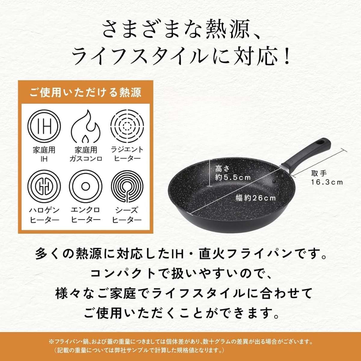 使いやすさにトコトンこだわったフライパン軽くてラクラク、しかも本格派。アルミ鋼材の底面を厚く、サイド面を薄く加工するスピン製法を採用することで、熱効率を高めています。ハンドルの長さを短くし、重量バランスを工夫することで『重さを感じにくい』構造に設計しています。