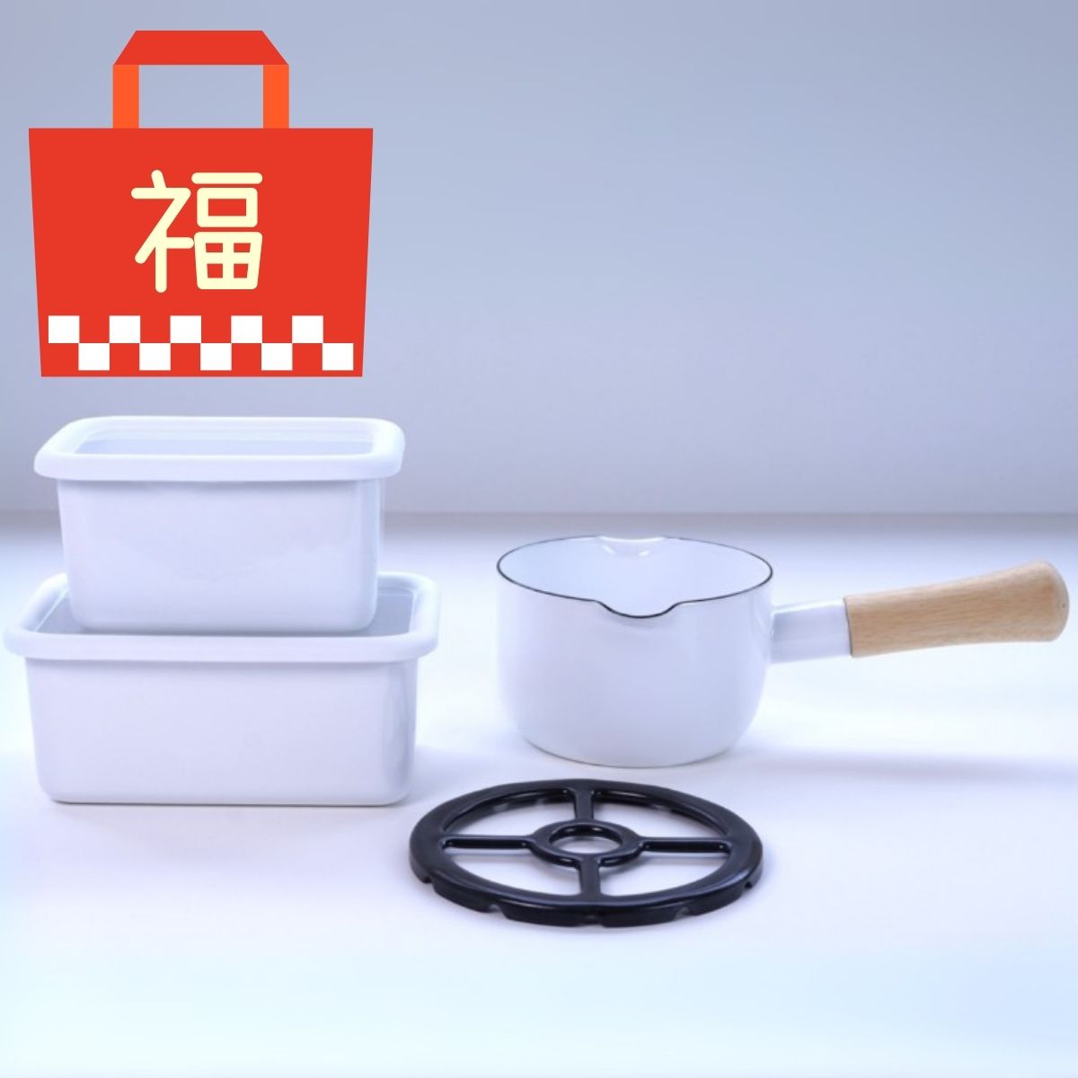 福袋 富士ホーロー 14cmミルクパン・琺瑯五徳・深型各容器2サイズ