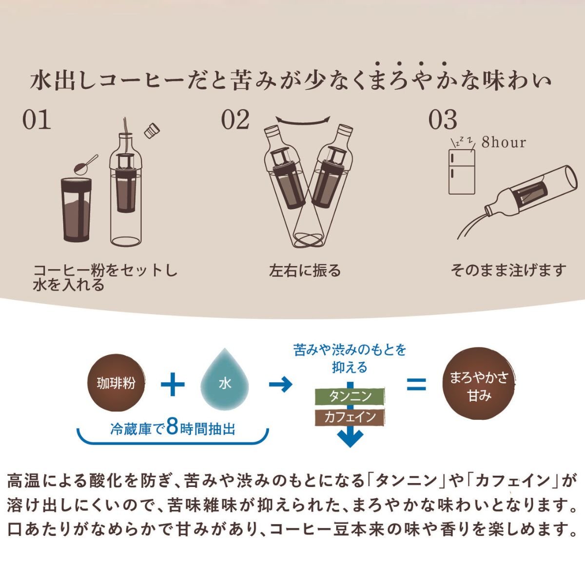 夜作って冷蔵庫に入れれば、朝には本格的な水出しコーヒーが完成。