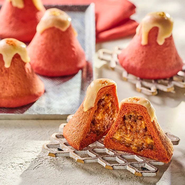 トマトとビーツの生地にピザソースとモッツァレラチーズを包み焼き上げます。