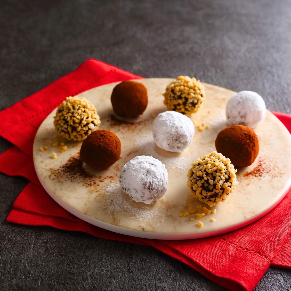 スイートチョコとミルクチョコレートの配合がこだわりの濃厚トリュフチョコは、3種類のコーティングで、贈るのも受け取るのも嬉しいバレンタインの定番スイーツ!