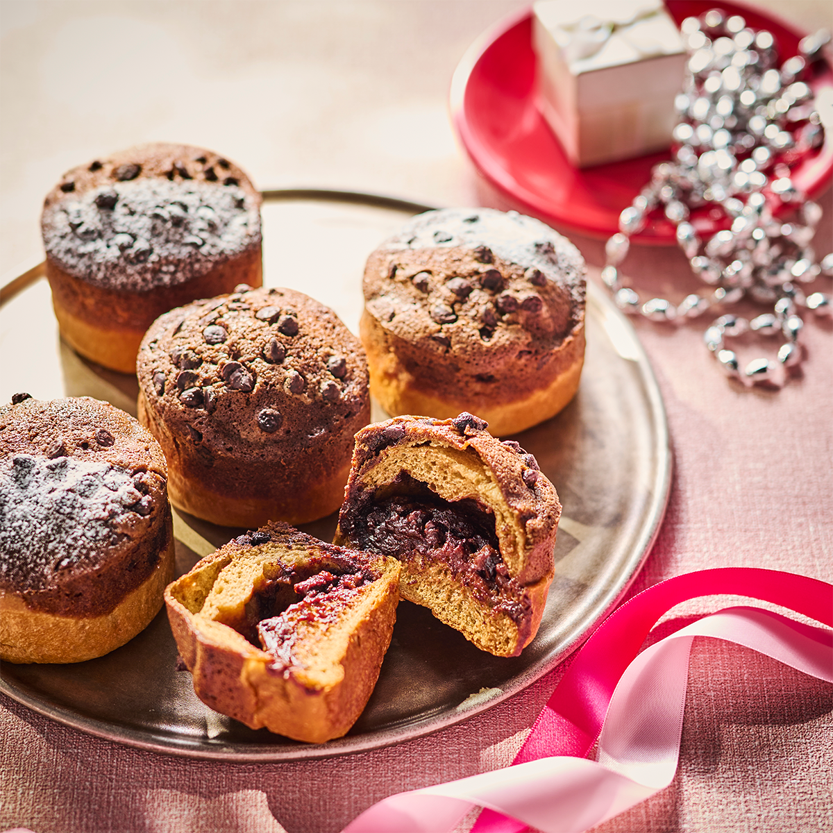 フィリングのチョコレートがとろり溶けた焼きたてをぜひ!