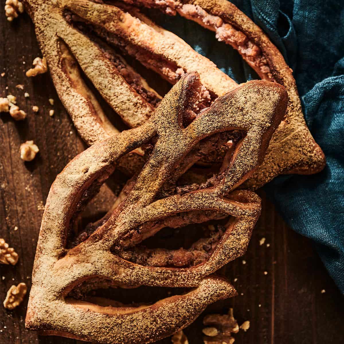 大豆粉入りの香ばしい生地に、くるみとつぶあんがベストマッチ!成形が楽しい和のフーガスです