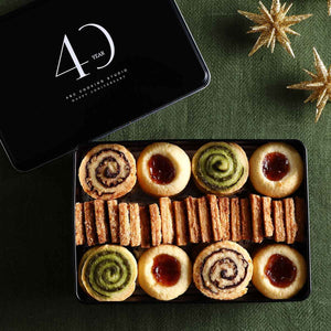 焼き上がった焼き菓子を、ひとつ、またひとつと缶に詰めていく。渦巻きパイ、アーモンドパイ、ジャムクッキー…。それぞれの焼き菓子が缶の中で重なり合って、やがてひとつのクッキー缶に。40周年記念の特別な缶がいっぱいになる瞬間は、なんだか嬉しくなります。大切な人への贈り物にも、自分へのご褒美にも。蓋を開けたときの笑顔を想像しながら作ってみてください。